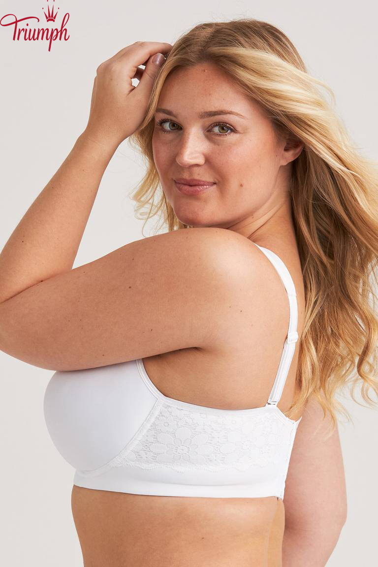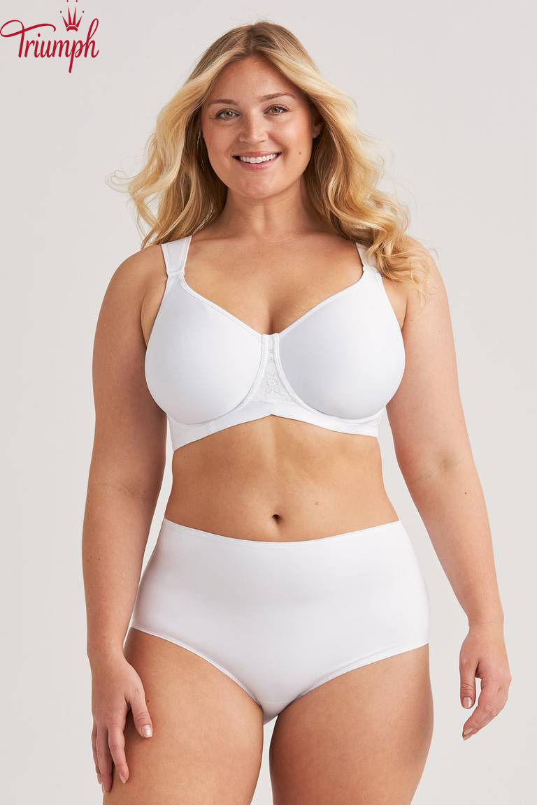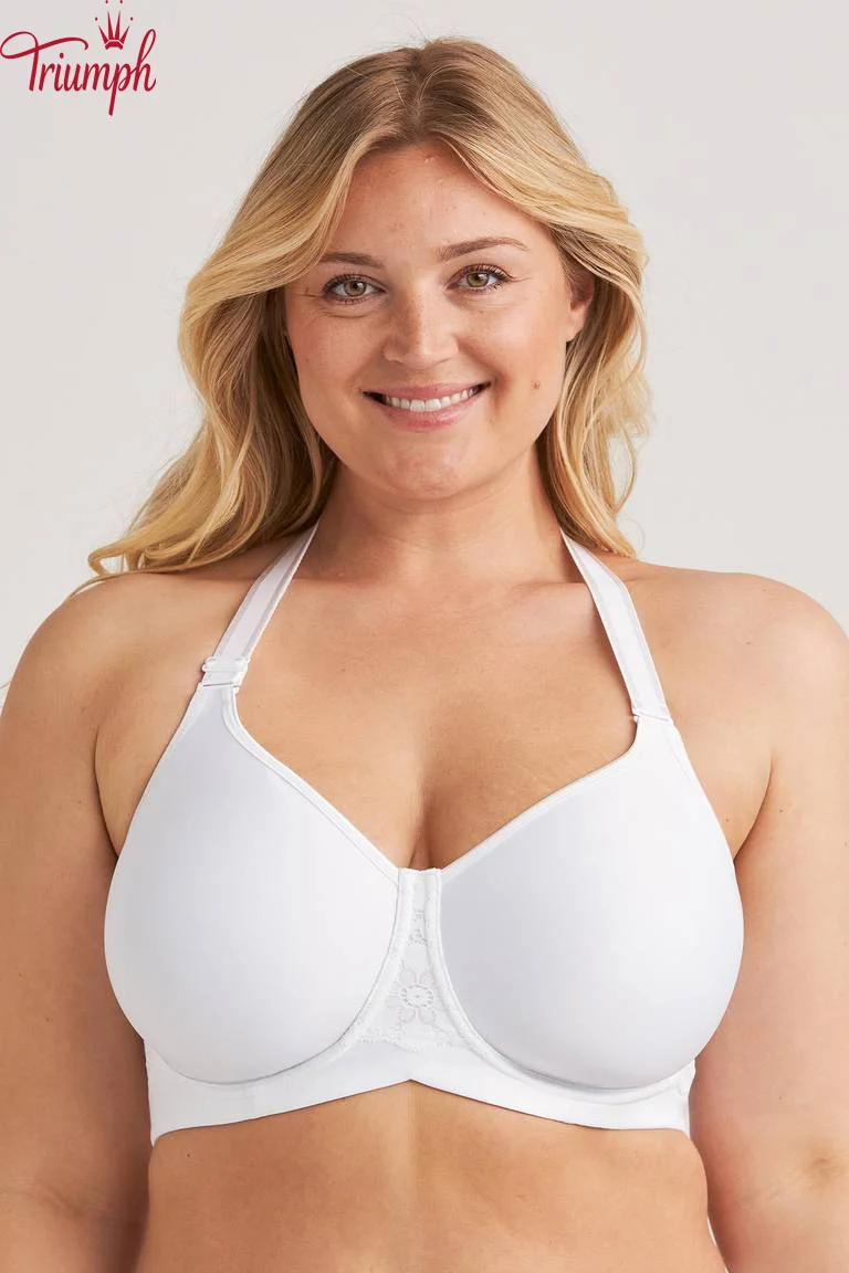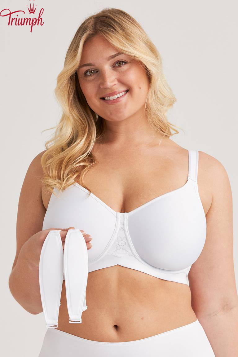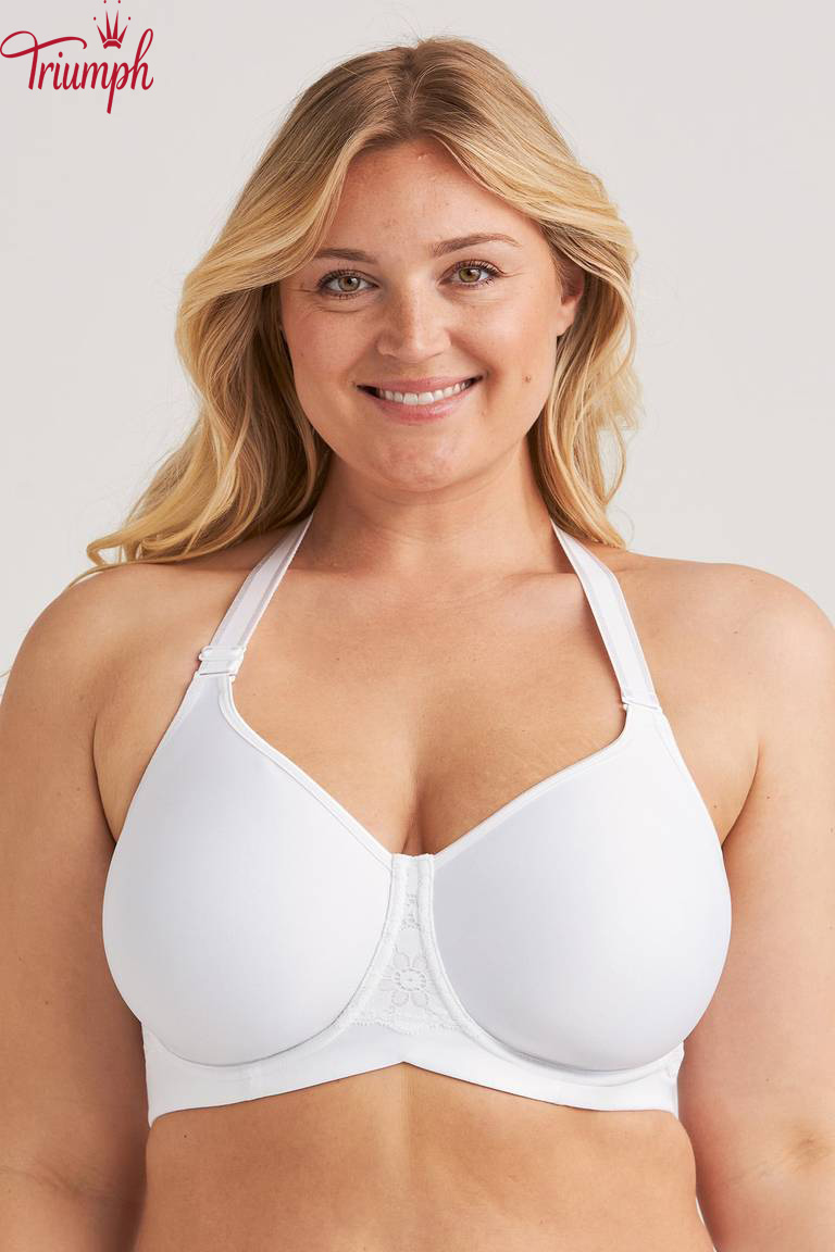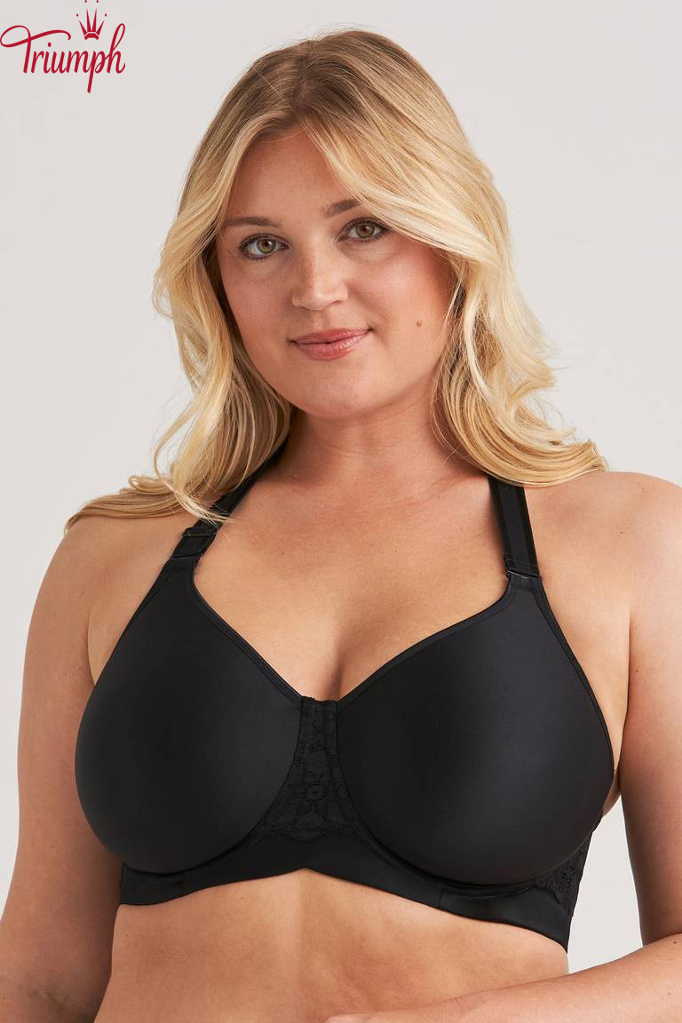 Soutien t-shirt com copas arejadas e divisórias que criam um formato naturalmente redondo sem acrescentar volume. O material respirável e acolchoado permite que a pele respire e proporciona uma sensação de leveza durante todo o dia. O suporte lateral interior ajuda a centrar e a moldar o busto, enquanto os aros proporcionam suporte e estabilidade. Este soutien tem dois tipos de alças: larga, almofadada e tradicional, elástica. As alças podem ser substituídas e usadas de diversas formas, por exemplo clássicas, cruzadas nas costas ou com um decote profundo, tornando o soutien adequado para vários estilos e ocasiões. A tecnologia Ergo Front™ permite que o soutien se ajuste melhor ao corpo, proporcionando estabilidade e conforto adicionais ao sentar. As costas largas em forma de U são decoradas com detalhes em renda e fecho de velcro ajustável. A alça lisa e enrolada sob o peito garante estabilidade e suavidade. Um soutien flexível e cheio de estilo para quem valoriza a funcionalidade e a versatilidade.